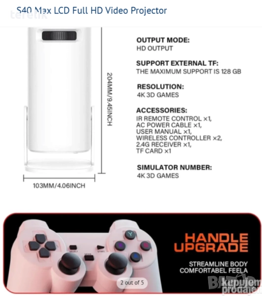 Нов S40Max 450 Смарт проектор и игрова конзола с 35 000 вградени игри 4K, Android 11 → Обява 52379210