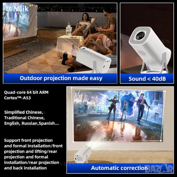 Домашно кино, проектор прожекотр къмпинг кино proector projector android tv box domashno kino