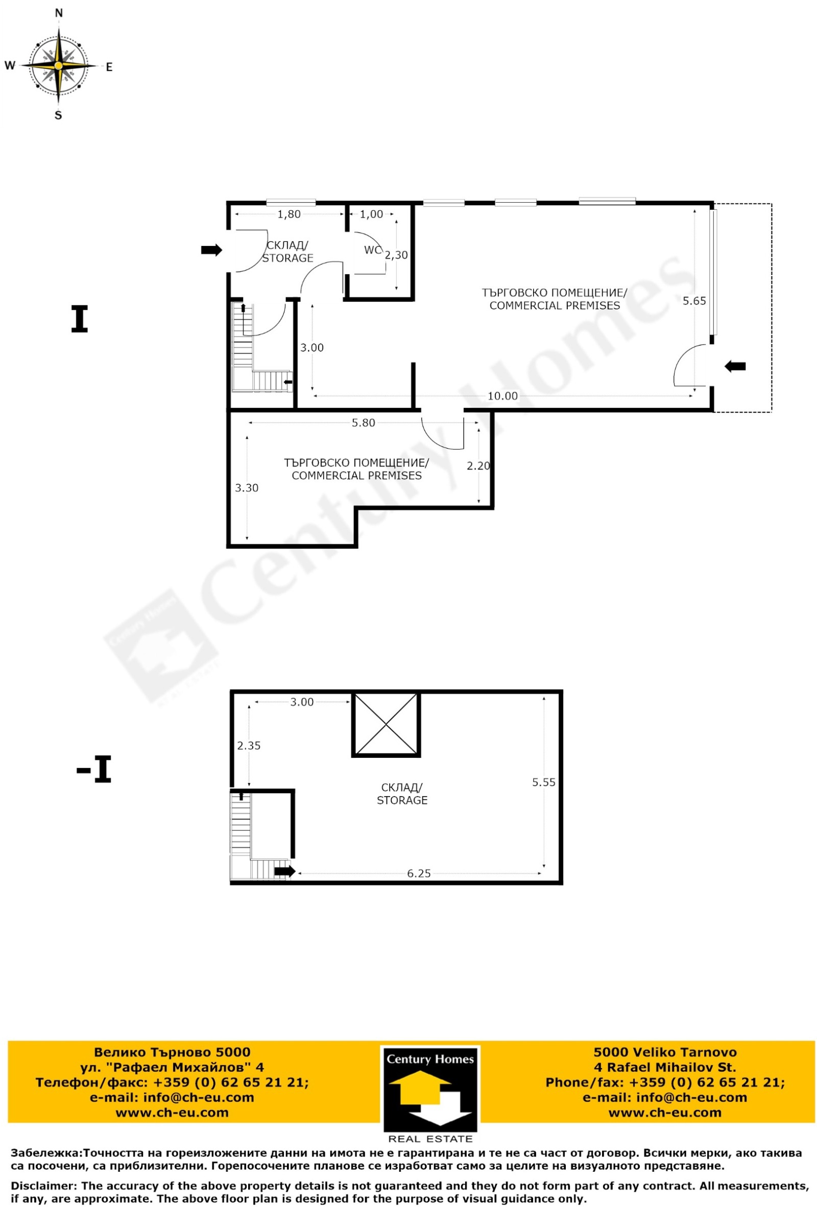 Имотът е с площ 150 кв. м. и се състои от две търговски помещения, склад, санитарен възел и подземно складово помещение. Магазинът е след ремонт, с PVC дограма, климатик, ток, вода и канализация. Подовите настилки са с гранитогрес, а изложението е Изток/Север.