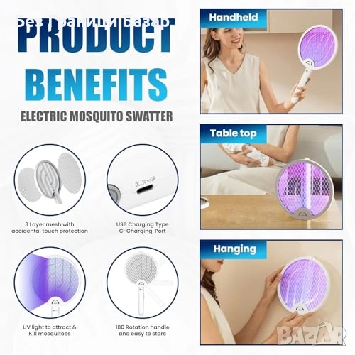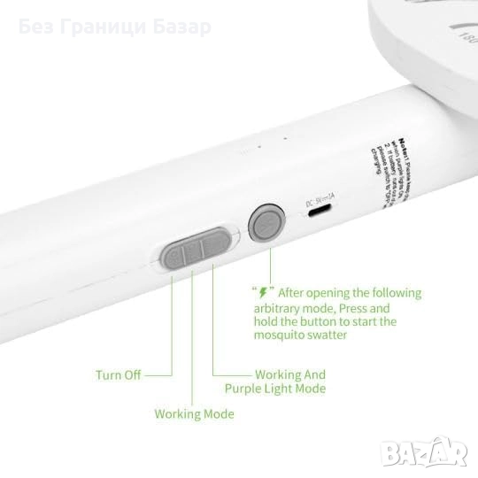 Електрическа ракета срещу комари с три режима на работа