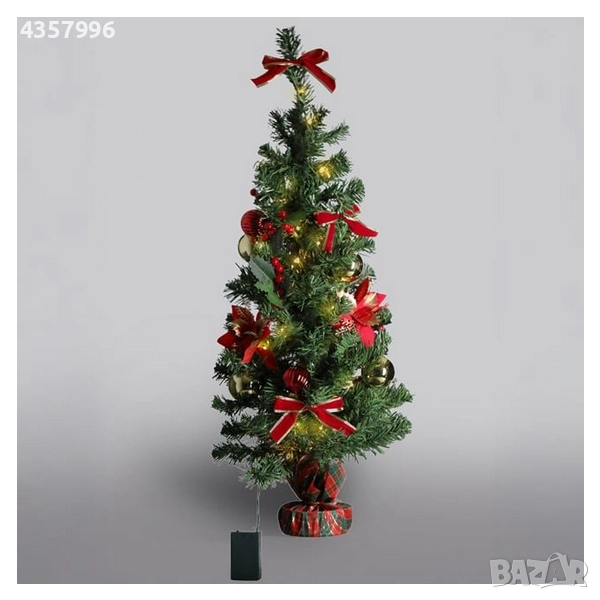 Декоративна коледна елха на батерии с топки, коледна звезда, 90 см