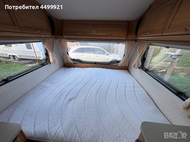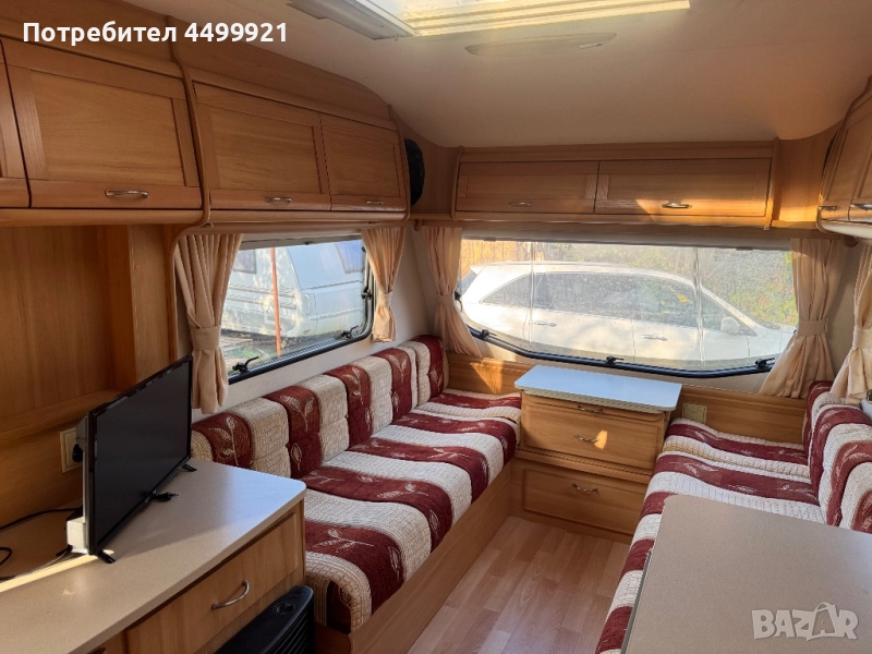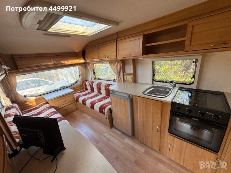Карваната е регистрирана с 2 места. Дата на производство 2008г. Оборудвана е с 2 броя акумулатори, газова бутилка, помпа за вода, хладилник , печка и бойлер Truma на ток и газ, щори и комарници на прозорците, микровълнова печка. Има фурна с 3 котлона и грил, покривало. Теглото е 1100кг, дължина без теглича 4, 75 м, а с теглича е 6, 09 м. Диваните нямат скъсано или протрито, перденцата са без забележки, щорите имат тук там някоя забележка, но нищо фрапантно, мокета и пода са здрави, няма влага.