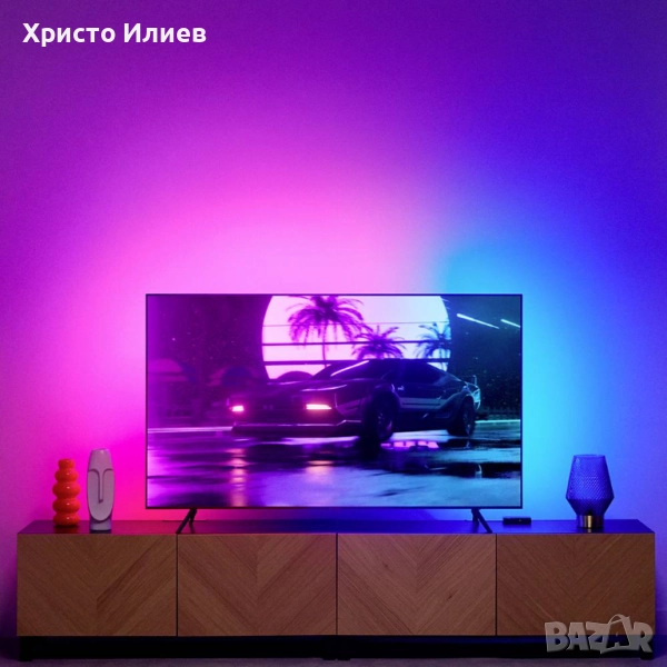 Синхронизира RGBIC LED лентовото осветление с телевизионно съдържание (филми, игри, музика)