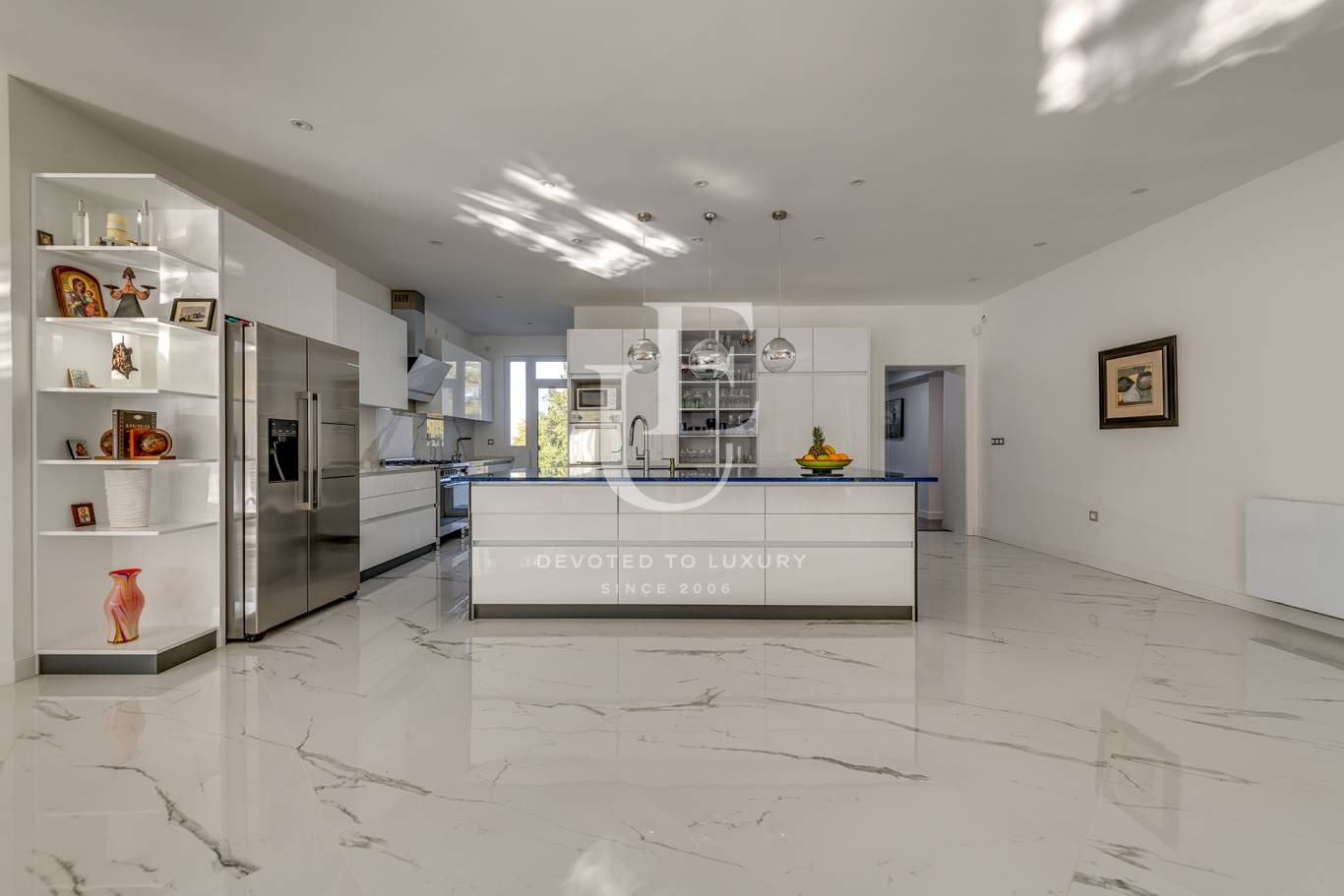 Къщата е нова, построена от висококачествени материали, разполага с вътрешен асансьор, огромен гараж за 5 автомобила, светли и просторни стаи с големи прозорци.