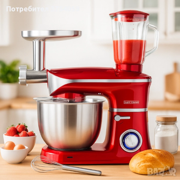 Приставки: бъркалка за яйца, кука за тесто, миксираща бъркалка, шпатула;
