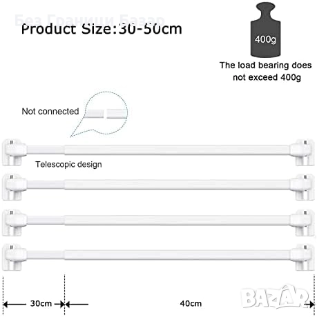 4 броя телескопични пръчки за пердета с регулируема дължина 30–50 см
