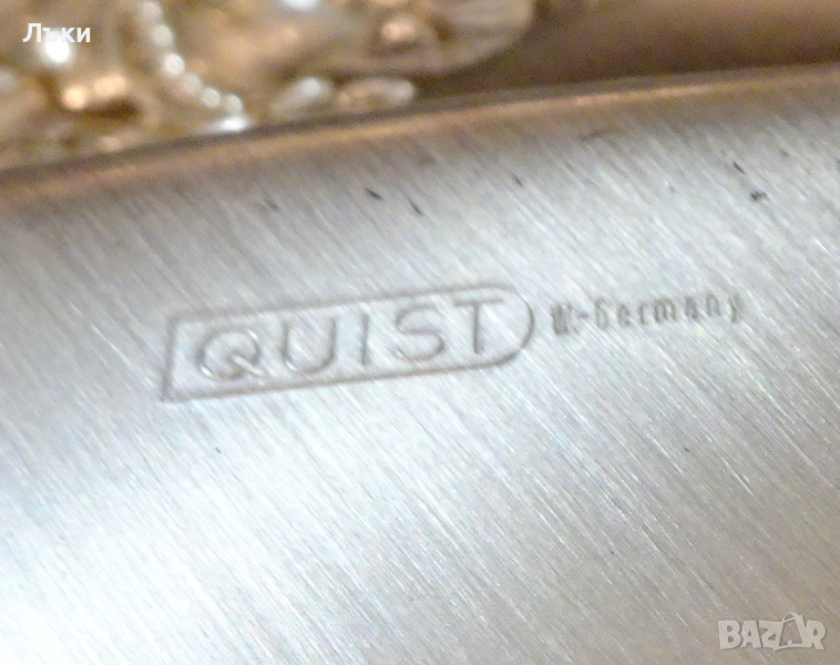 инициалите на световно известната фабрика Quist,датира от 1970 година.Периферията е декорирана с прецизно изваяни