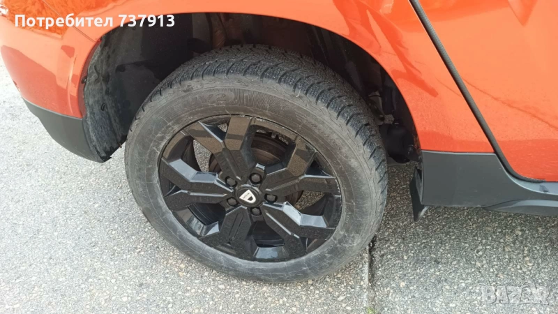 Надлъжни релси на покрива в оранжев цвят с надпис «Duster»;