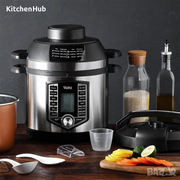 Мултикукър под налягане и Фритюрник Air Fryer 2в1, 6L, 44 функции, 12 програми → Обява 52382646