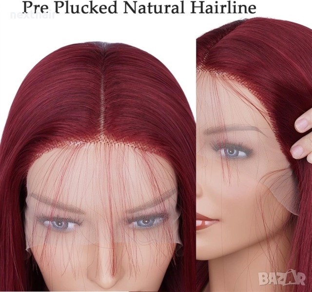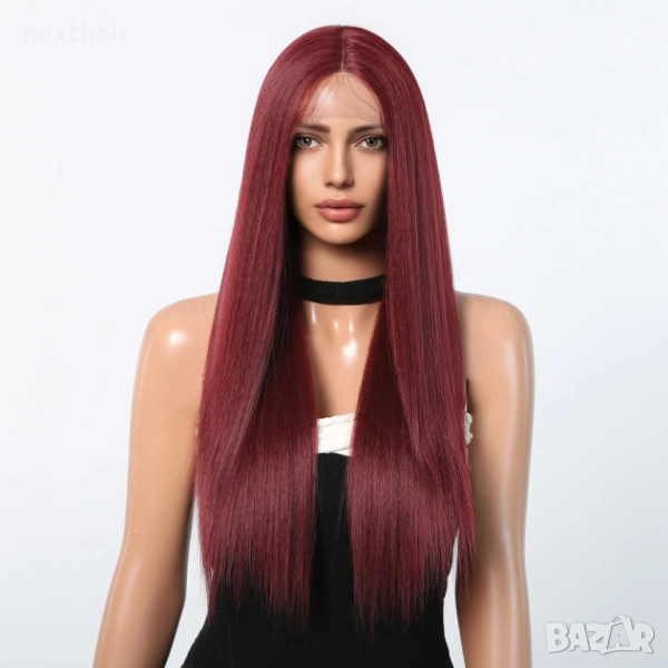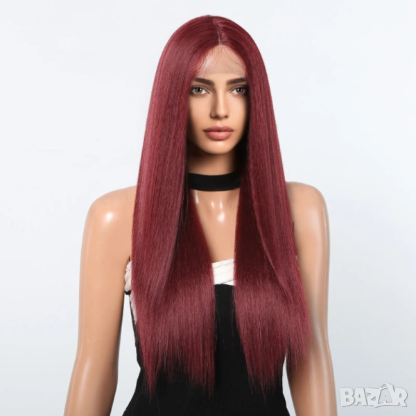 73 см Тъмно червена бургунди бордо права перука с дантела 13x4x1 → Обява 52383394