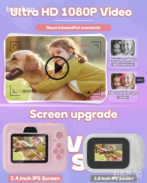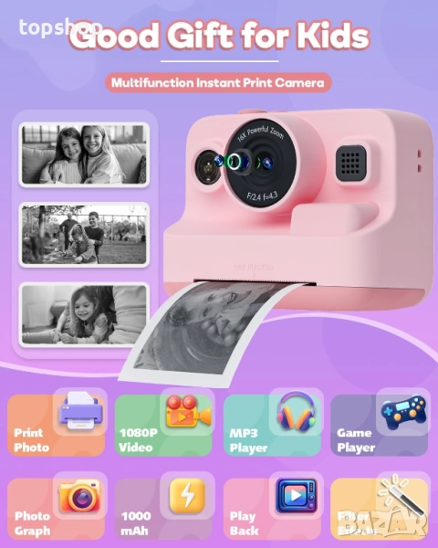Детски фотоапарат за моментално печатане, 1080P детски фотоапарати за моментално печатане на снимки