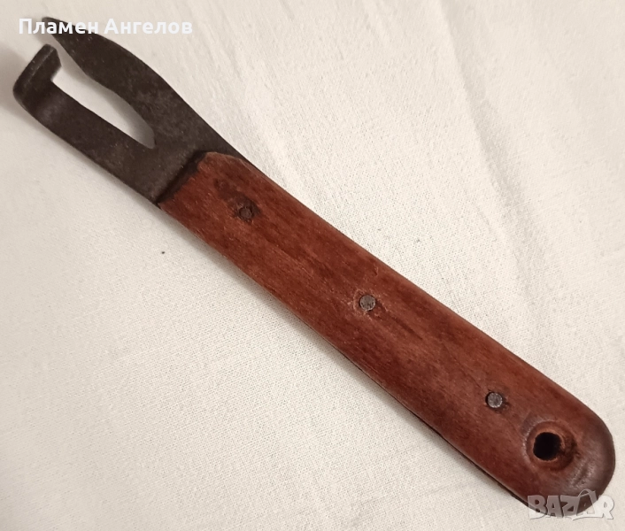 Рядка отварачка за консерви WW2 GERMAN WEHRMACHT FRUHER-SOLINGEN DRP. Била е част от стандартното оборудване на германските войници от Вермахта по време на Втората световна война. 14.5см Рядка находка, няма изкривявания, отлично запазена. Моля проверете в гугал.