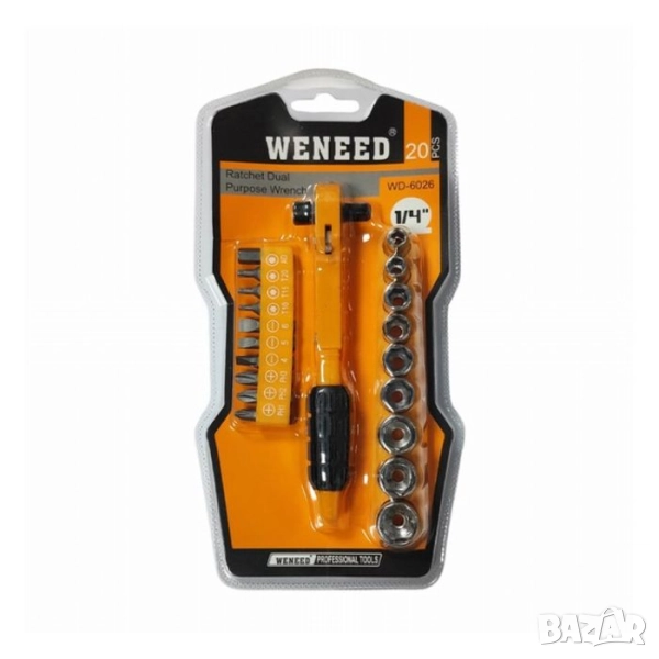 Мини тресчотка (рачетен ключ): Това е основният инструмент с дръжка. Механизмът ѝ позволява да затягате или разхлабвате винтове и гайки с въртеливо движение на китката, без да се налага да сваляте инструмента.