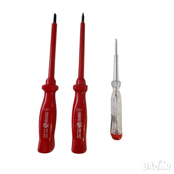 - 2 отвертки – плоска и кръстата, с изолирани дръжки