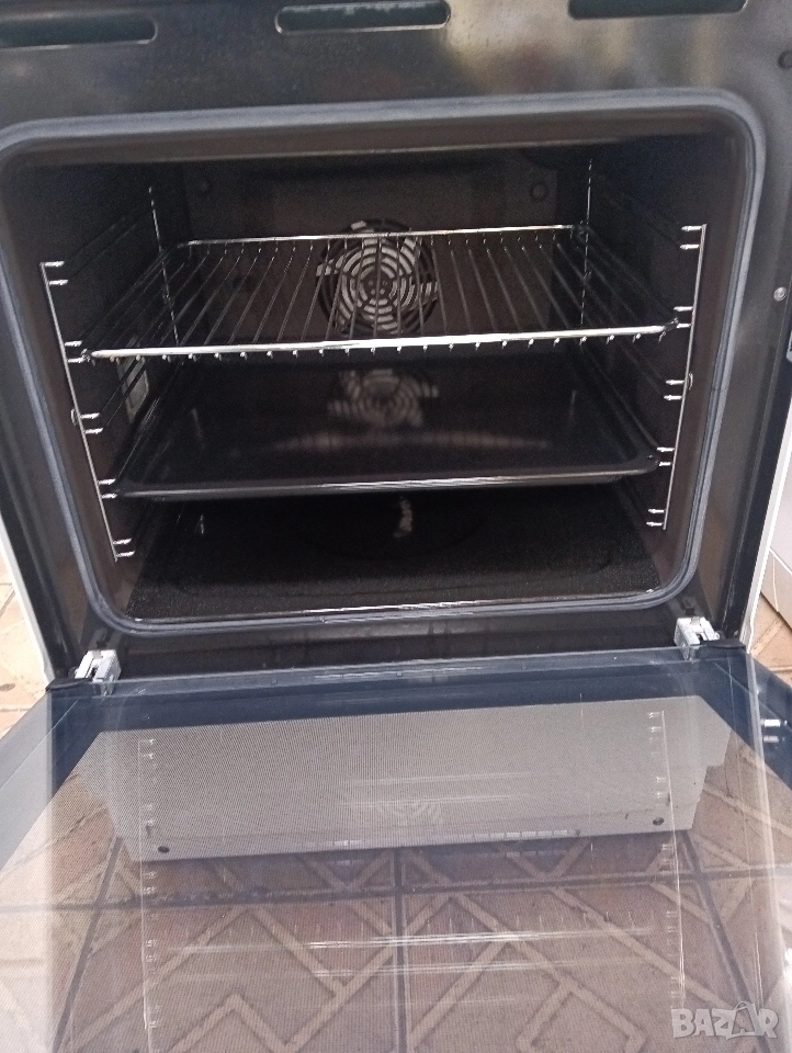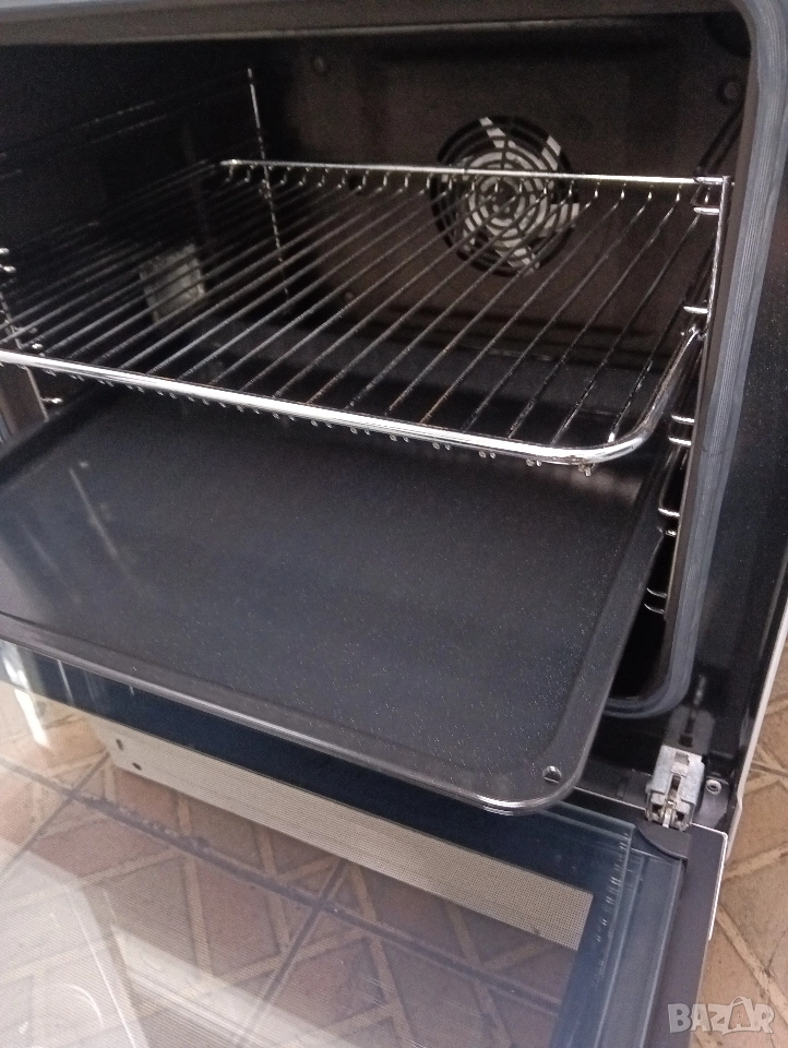 Широка 60 см печка с керамичен плот, вентилатор, грил, пуш бутони и др.