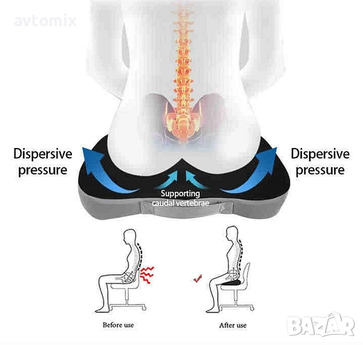 Ще забележите това още при първата употреба. Създадена да осигури комфорт при много заболявания на гръбначния стълб и седалището, възглавницата от мемори пяна е ефективна и Ви помага да седите удобно без болка.