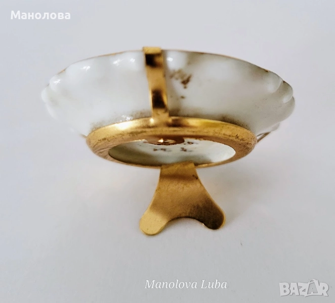 И двете чинийки са месингови стойки която могат да се окачва на стена, произведени са през втората половина на 20-ти век. В прекрасно колекционерско състояние, нямат чипове, наранявания и повреди по цветния декор и кантовете от 24каратово злато.