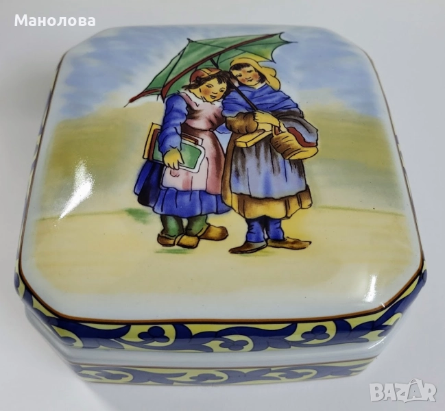 Кутия от керамика, репродукция на Френско народно изкуство, Fa ïence de Quimper.