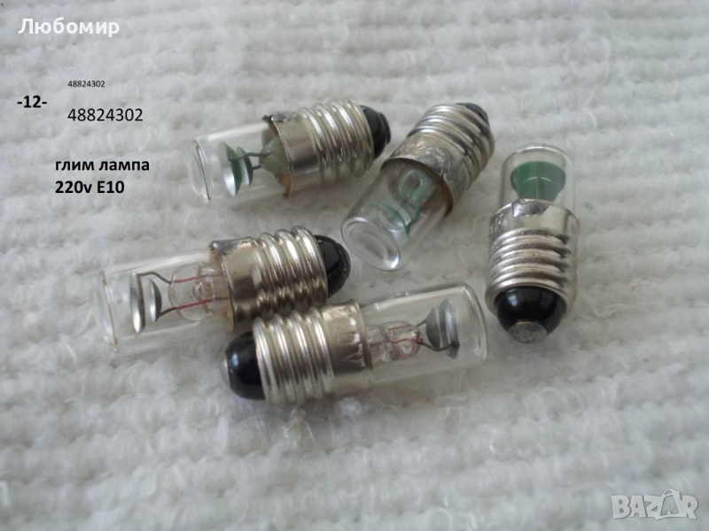 12. Глим лампа 220v E10 - неизползвано - 5 бр. х 3 лв.