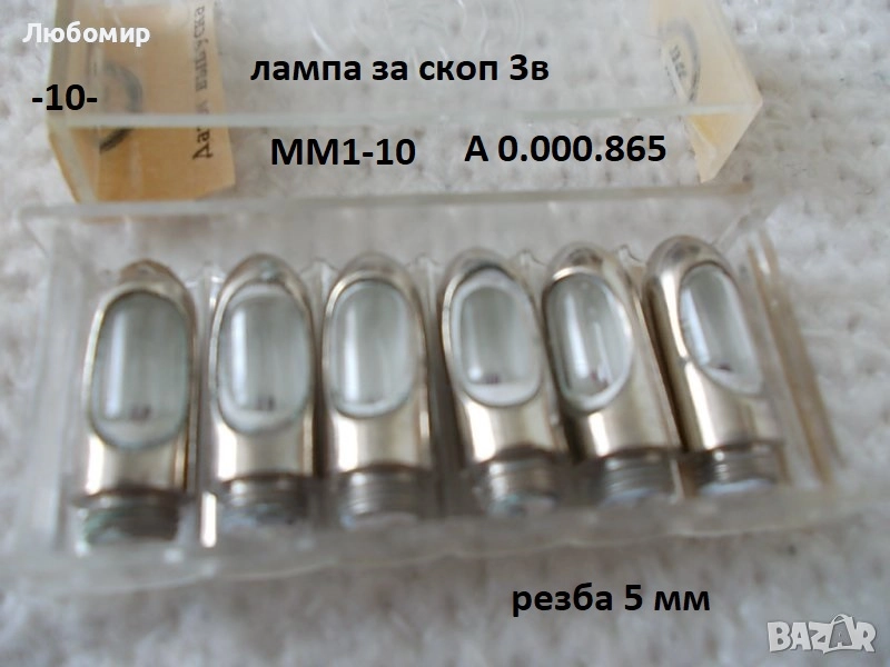 10. Лампа 3в СССР ММ1-10 за скоп - неизползвано - 6 бр. х 5 лв.