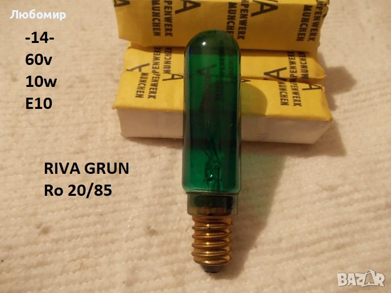 14. Лампа 60v 10w E10 RIVA GRUN - неизползвано - 4 бр. х 4 лв.