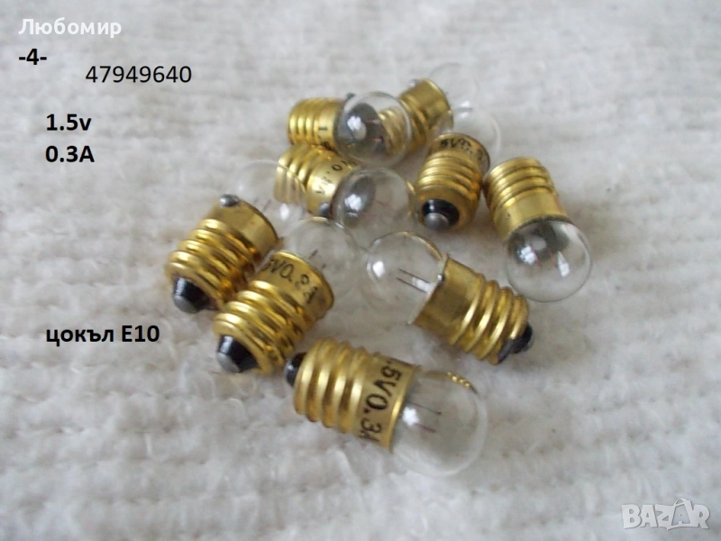 4. Лампа 1.5v 0.3A E10 - неизползвано - 9 бр. х 2 лв.