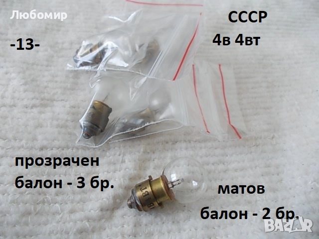 13. Лампа 4в 4вт СССР - неизползвано - 5 бр. х 4 лв.