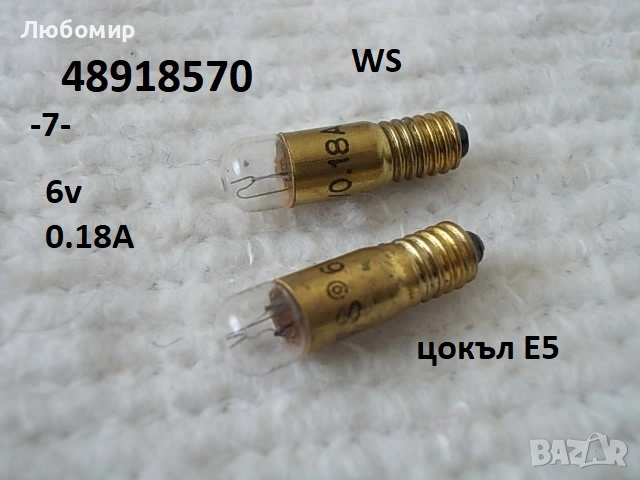 7. Лампа 6v 0.18A E5 WS - неизползвано - 2 бр. х 3 лв.