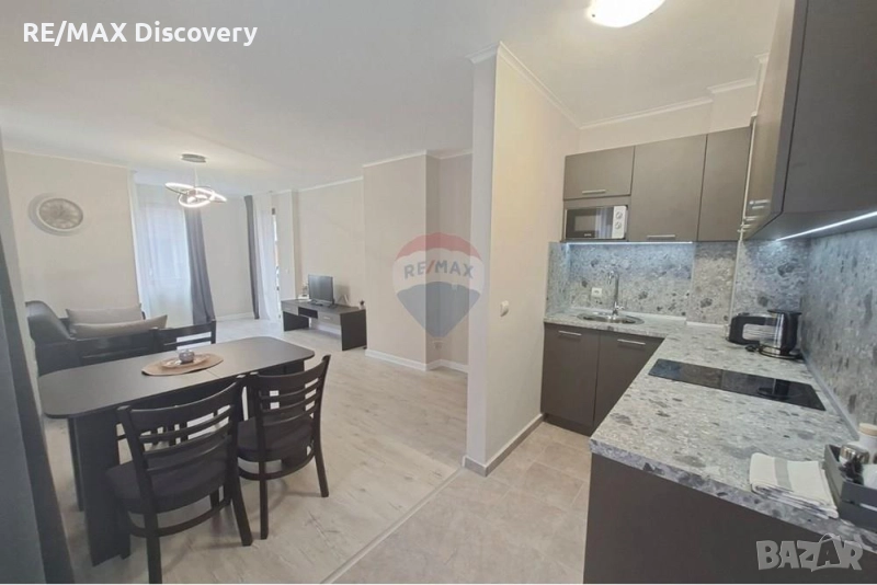 С обща жилищна площ от 56.84 кв.м., апартаментът предоставя функционално пространство, което включва една спалня, хол с изцяло оборудван и обзаведен кухненски бокс и една баня с тоалетна. Имотът е напълно обзаведен, предлагайки всичко необходимо за вашият удобен престой.
