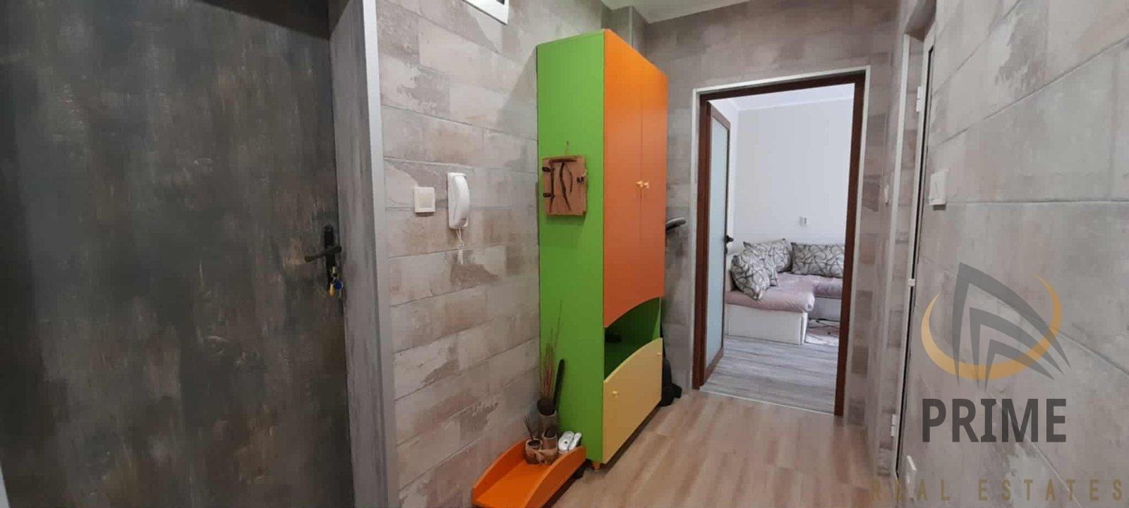 РАЗПРЕДЕЛЕНИЕ: Коридор, хол с кухня бокс, две спални и баня с тоалетна и тераса.