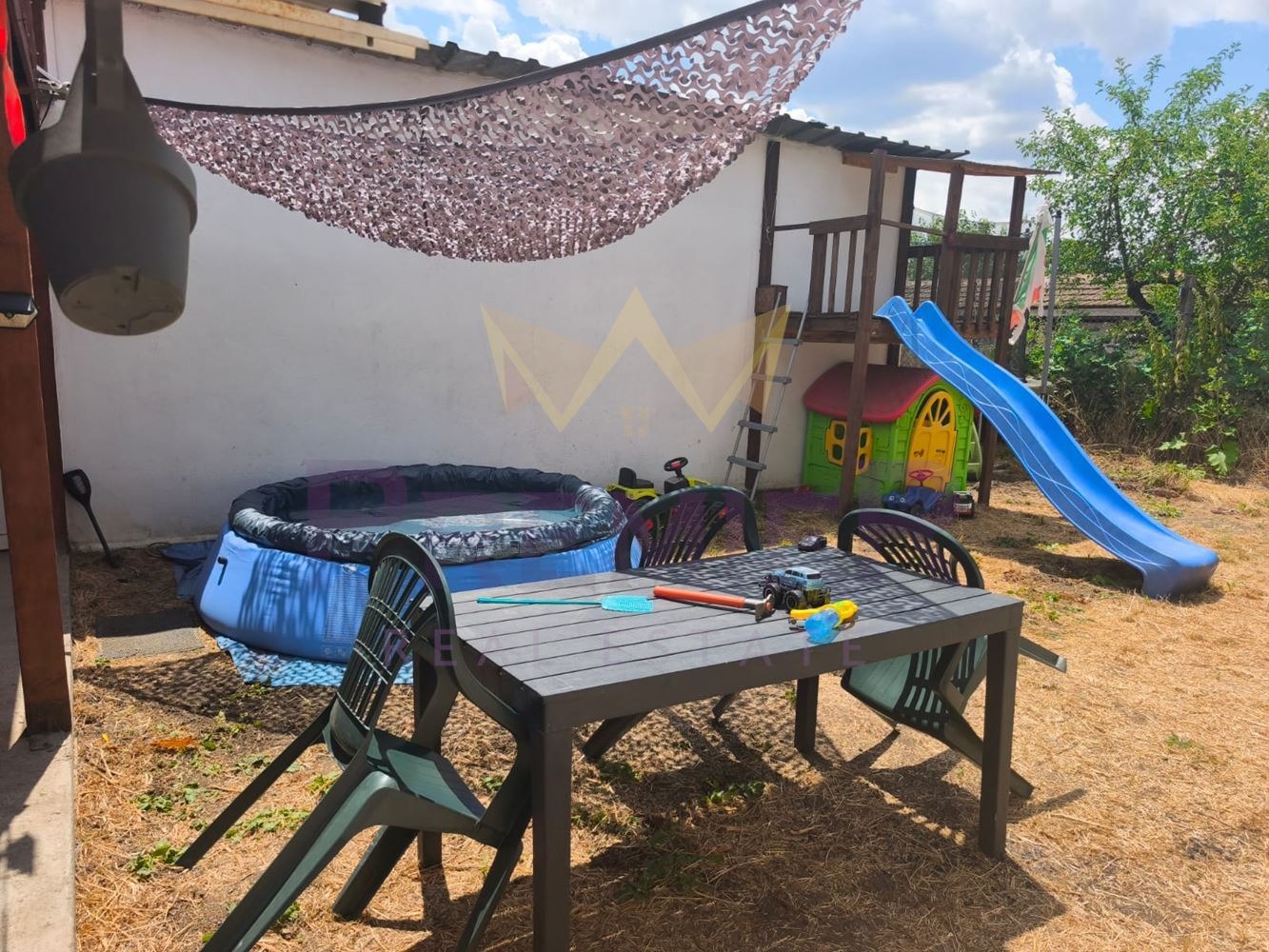Площа на парцела е 1000 кв.м. Състои се от дневен тракт в който е оборудван с нова кухня,