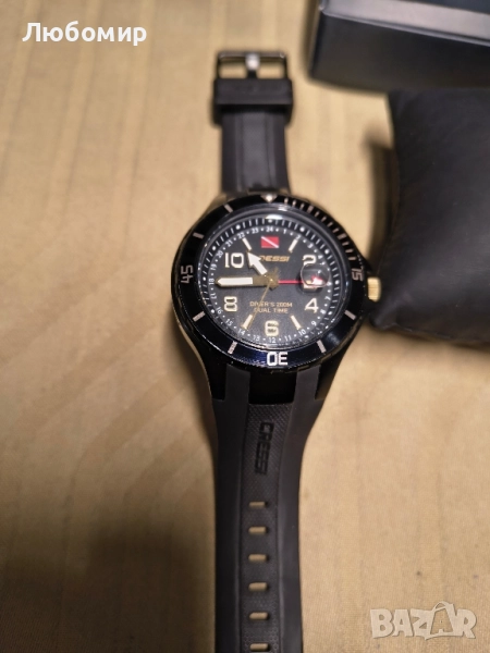10 ATM професионален подводен часовник с кварцов механизъм.