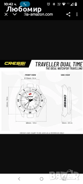 Cressi Traveller Dual Time Черен 10 ATM професионален подводен часовник