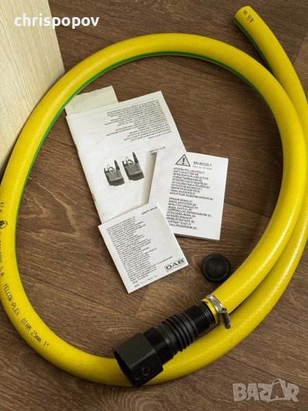 Доставя се със захранващ кабел с щепсъл, възвратен клапан и щуцер за маркуч.