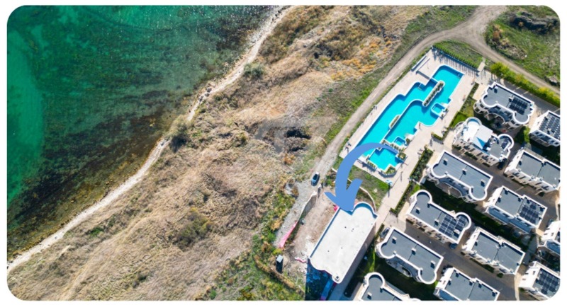 Площ на имота 145,21кв.м., двор 144,36кв.м. и паркомясто непосредствено до сградата. Състои се от просторна всекидневна с кухненски кът, мастър спалня с гардеробна и самостоятелна баня, втора спалня подходяща за деца или гости, баня с тоалетна, склад и веранда от която се излиза към озеленен двор с фронтална гледка към морския залив.