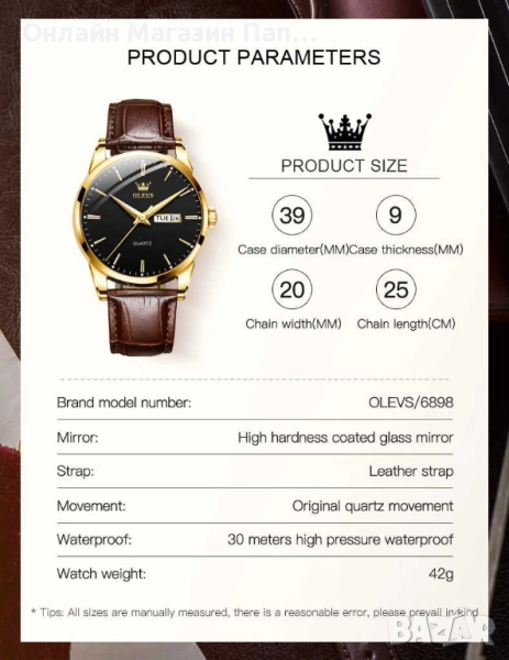 OLEVS 6898 е стилен мъжки класически часовник, съчетаващ бизнес излъчване и ежедневен комфорт. С прецизен кварцов механизъм и циферблат с римски цифри, моделът впечатлява с изтънчен и вечен дизайн.