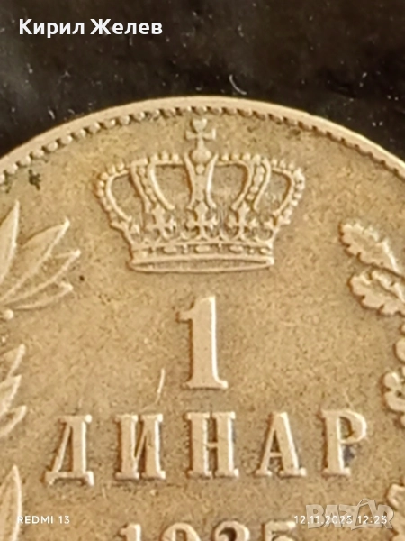 Рядка монета 1 динар 1925г. Александър първи Крал на СЪРБИЯ, ХЪРВАТИЯ, СЛОВЕНИЯ 26268