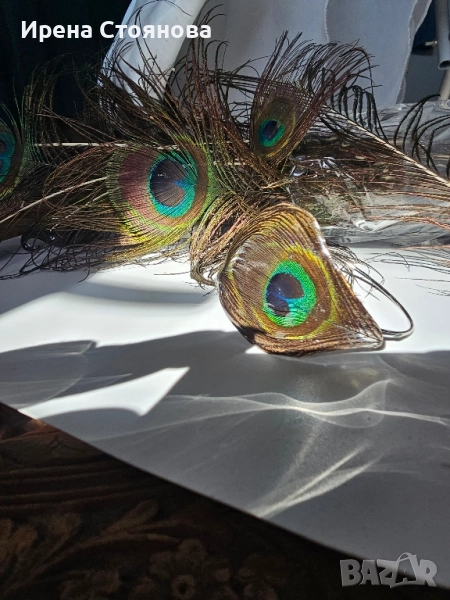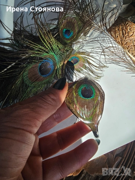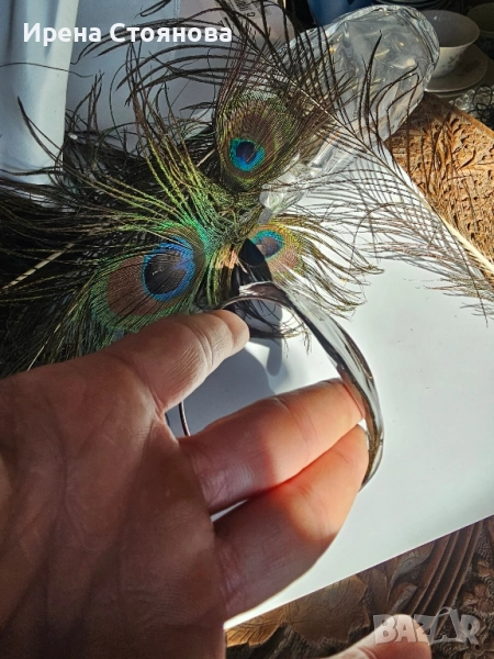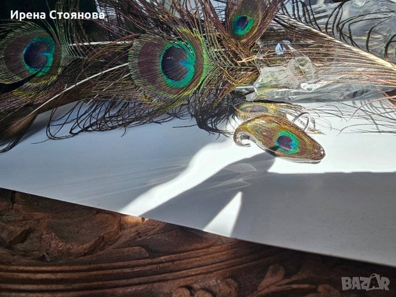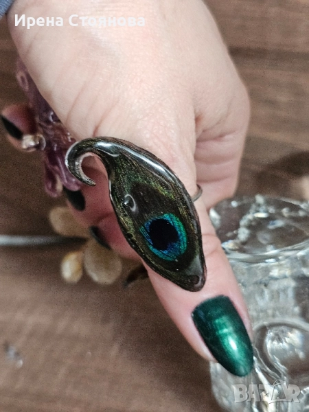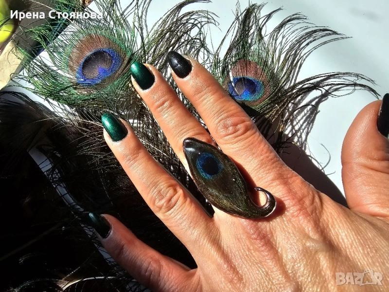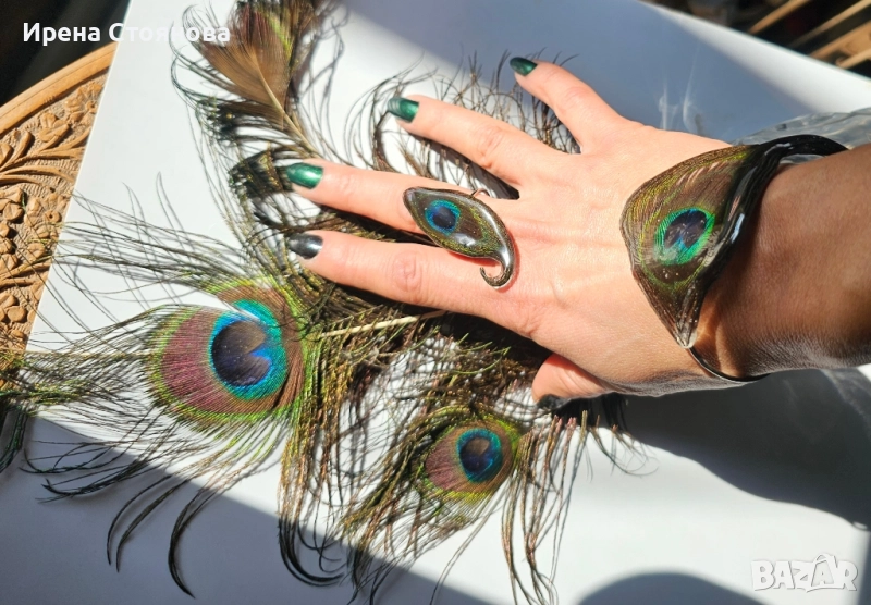 Ръчно изработени, регулируеми гривна и пръстен с паунови пера, → Обява 52387499