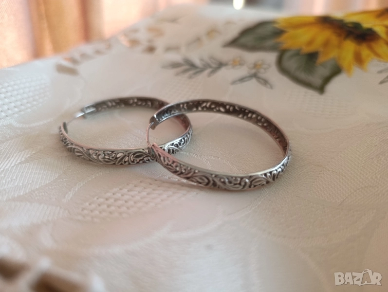 Дамски сребърни обеци халки, тип филигран. Диаметър 4.5.