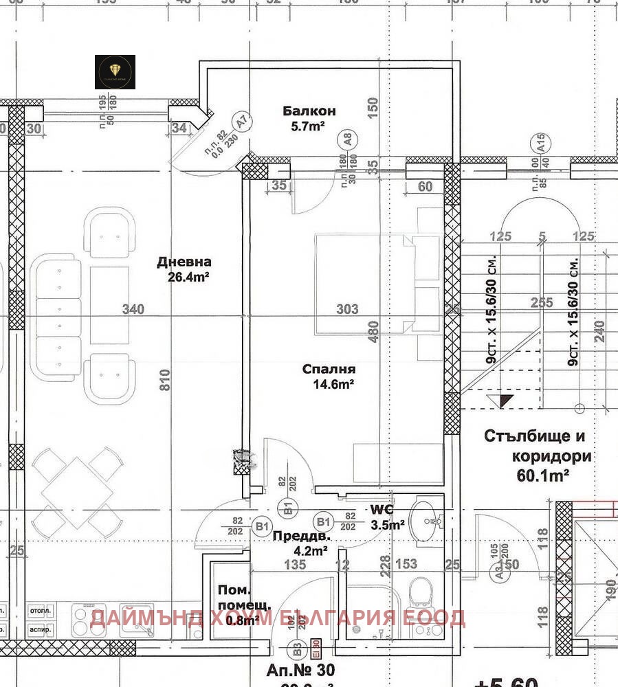 📐 Разпределение: дневна с трапезария и кухненски бокс, спалня, баня с тоалетна, коридор, килер и тераса.
