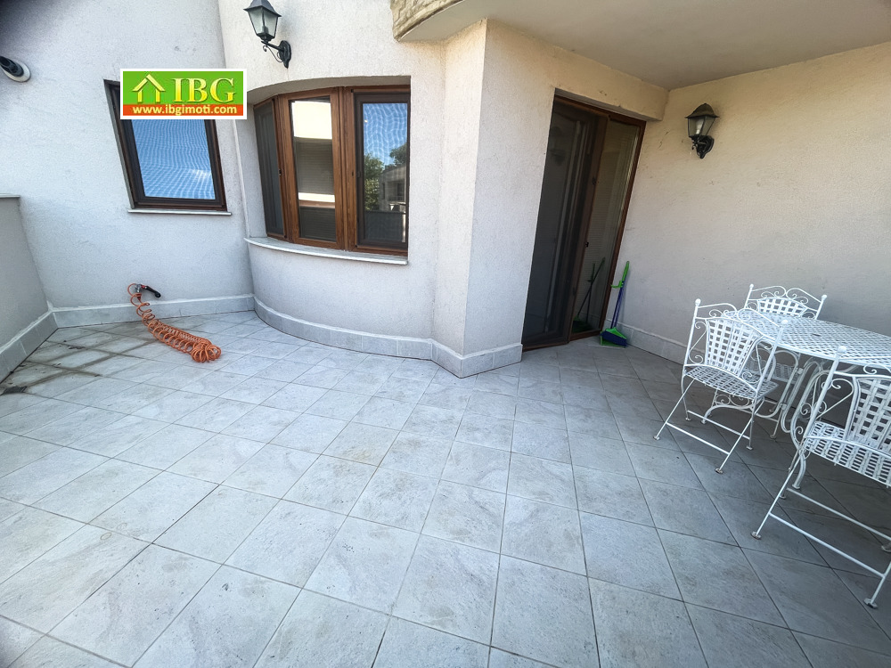 Голяма и слънчева тераса, идеална за сутрешно кафе или вечеря с близки и приятели в топлите дни