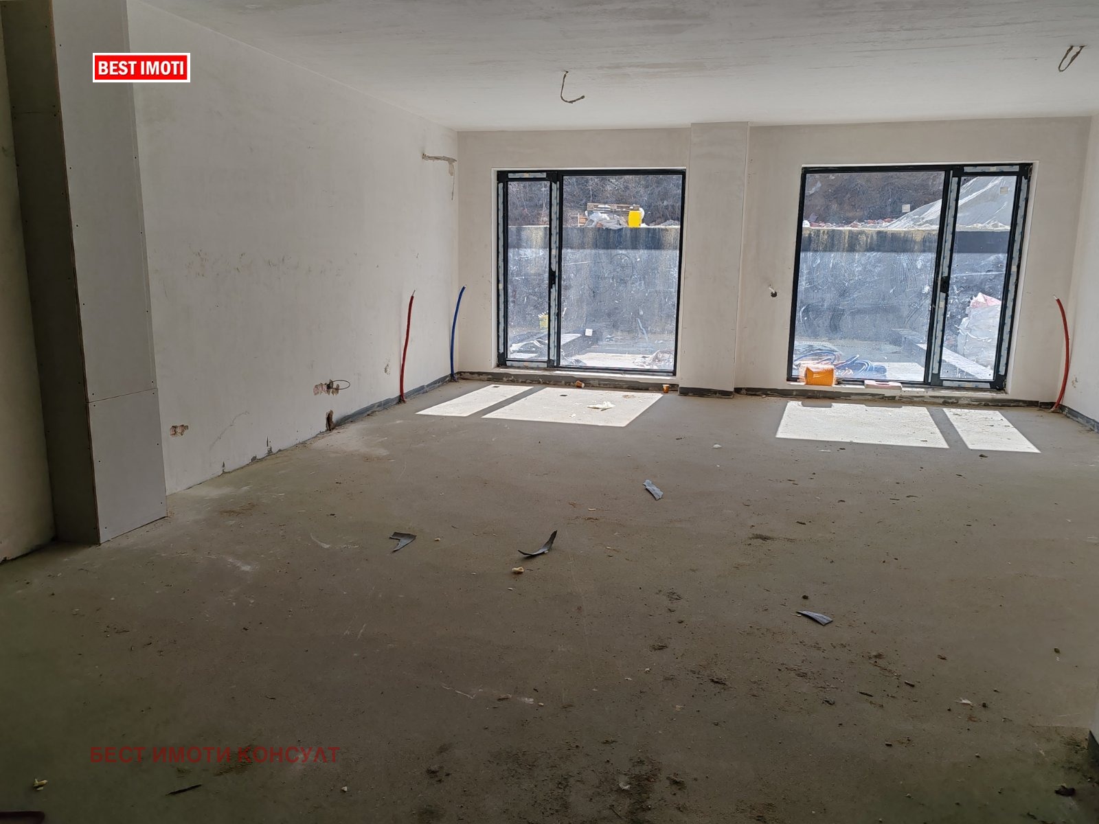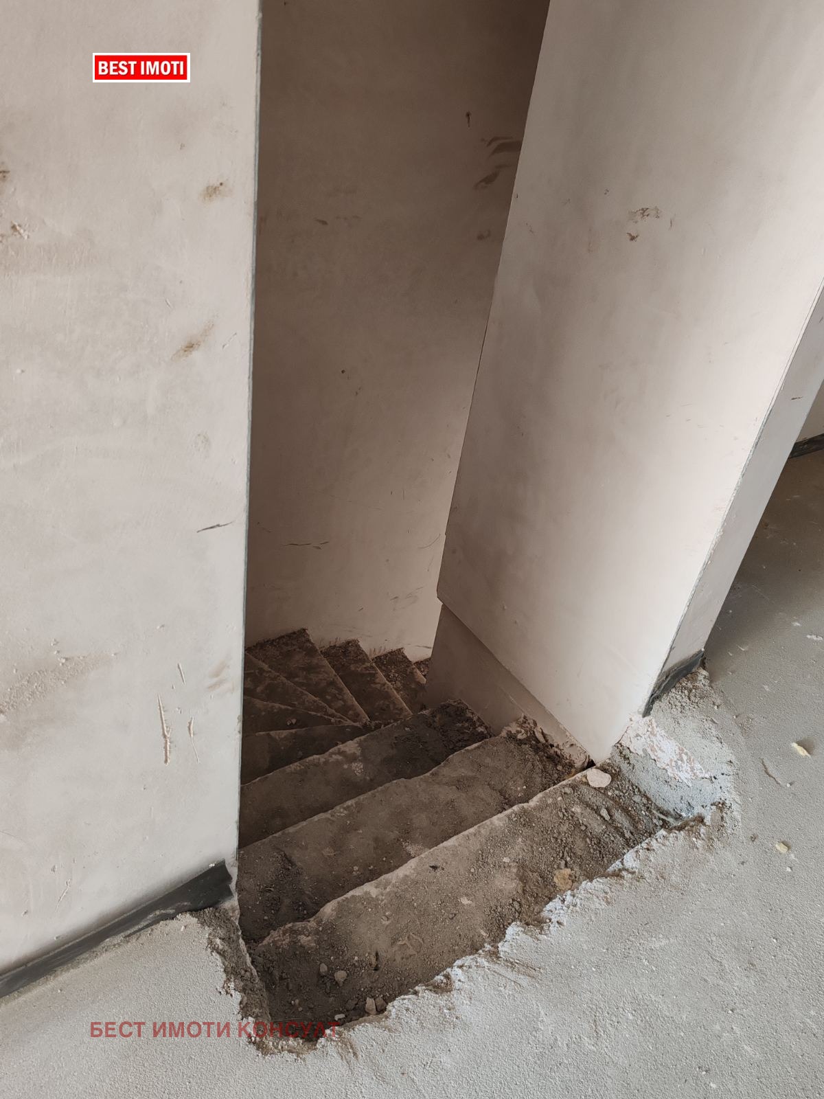 РАЗПРЕДЕЛЕНИЕ: първо ниво-входно антре, всекидневна с кухненски бокс/67 кв./, собствен двор/35кв./, санитарно помещение, второ ниво-четири спални, две бани с тоалетни, отделно тоалетна, голям склад и две тераси. Застроена площ 214 кв.м. Апартаментът се предава на шпакловка и замазка с монтирана входна блиндирана врата, 6-камерна ПВЦ дограма.