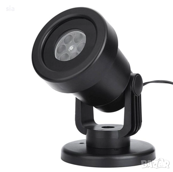 Проектор 220-240 V 50-60 Hz, фоторитмичен с лазер и дизайн на въртяща се снежинка. Цветът на светлината е бял, а размерът на изображението се променя в зависимост от разстоянието до проектора. На най-близко разстояние (1,5 м) размерът на изображението е 1