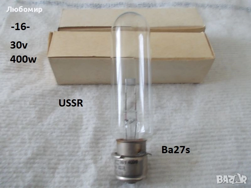 16. Лампа 30v 400w Ba27s USSR - неизползвано - 2 бр. х 35 лв.