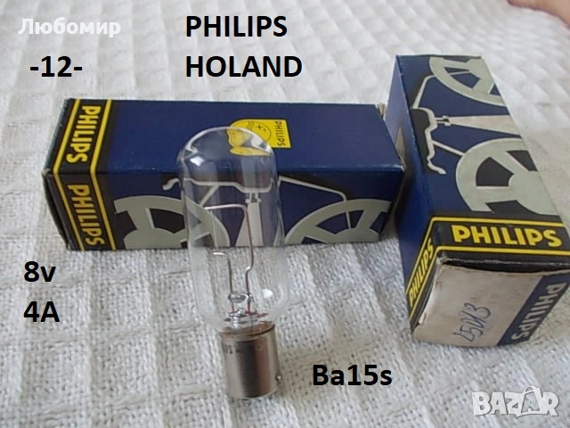 12. Лампа 8v 4A Ba15s PHILIPS HOLAND - неизползвано - 4бр.х30лв.