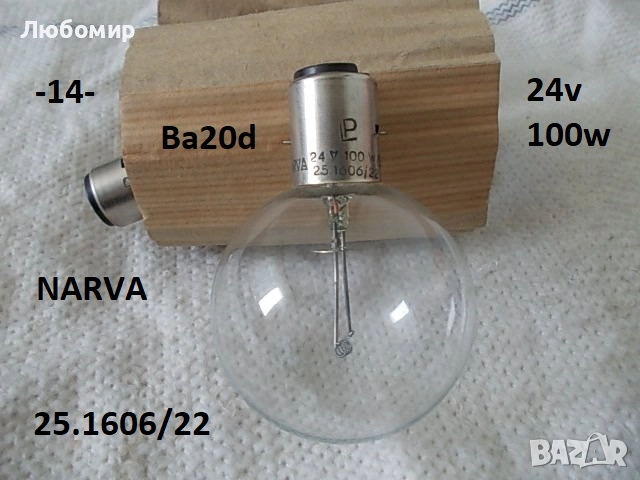 14. Лампа 24v 100w Ba20d NARVA - неизползвано - 4 бр. х 25 лв.