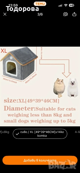 Къщичка легло за куче или котка, снимка 1 - За кучета - 52388707 Къщичка легло за куче или котка, снимка 2 - За кучета - 52388707 1/2