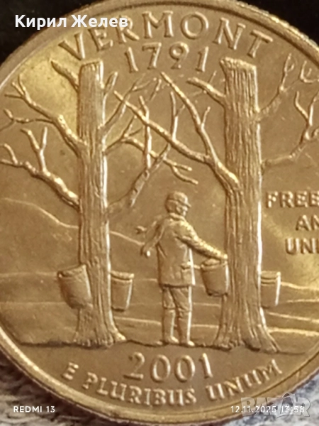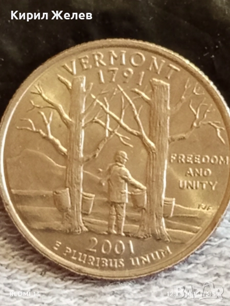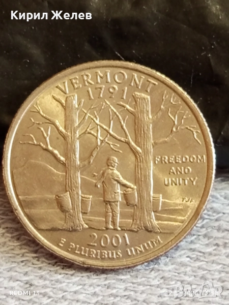Рядка монета 1/4 щатски долар 2001г. КУОТЪР ЩАТ ВЕРМОНТ за КОЛЕКЦИОНЕРИ 51819 → Обява 52388726