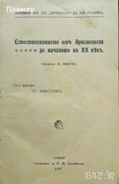 1. И. Пизета - Естествознанието отъ Аристотеля до началото на 20-ти векъ -издание 1907г. в 120 страници