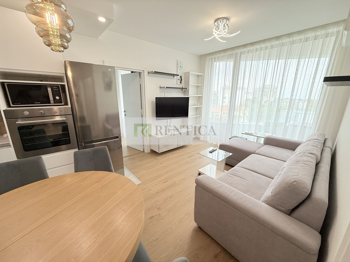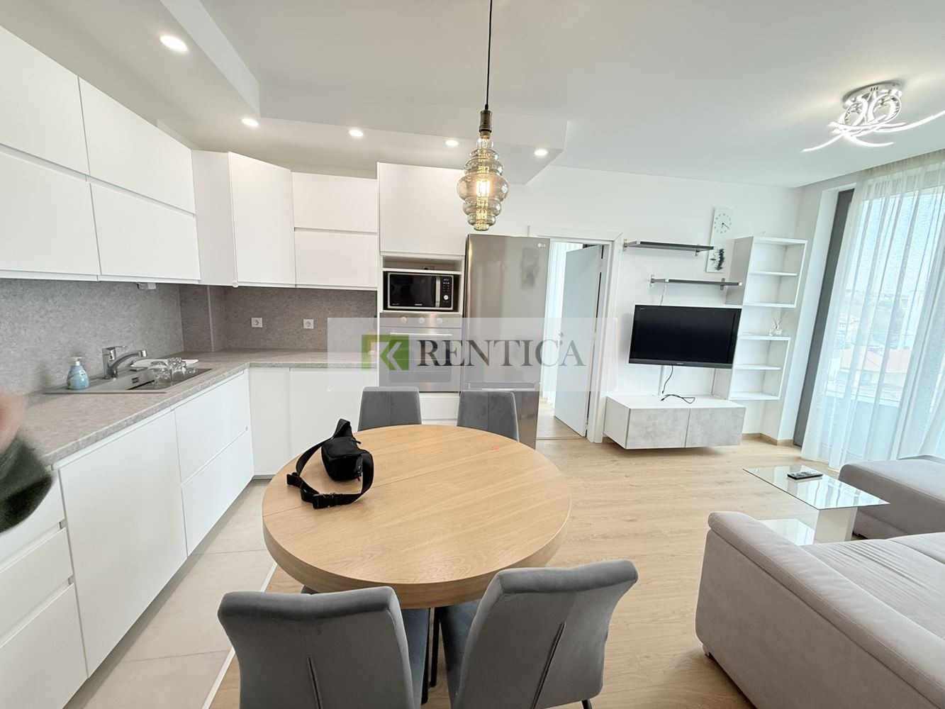 Оферта 8324 ✅ Rentica.bg предлага под наем ЧИСТО НОВ, луксозно обзаведен тристаен апартамент, който се намира в кв. Чайка, в близост до пазара, Морската градина, училище и детска градина. Апартаментът е разположен на осми жилищен етаж в НОВА сграда с асансьор и луксозни общи части. Състои се от всекидневна в едно с кухня оборудвана с всичко необходимо, две спални, баня с тоалетна, три тераси и перално помещение. Отоплението е с климатици. ВКЛЮЧЕНО ПАРКОМЯСТО В ЦЕНАТА!!! Отдава се дългосрочно.